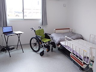 緊急時対応 各室2箇所に設置されている緊急呼び出しボタンのコールが押された場合、住宅職員が居室に駆け付け対応します。(24時間対応)