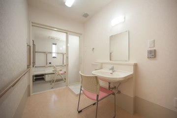 緊急時対応 各室のベッド、トイレに緊急通報装置を設置して、職員が携帯するPHSに転送され、日中・夜間(併設の訪問介護スタッフが必要なサービスを提供)とも職員が対応を行います。