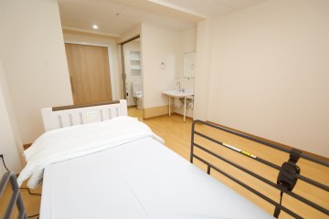 緊急時対応 各室2箇所に設置されている緊急呼び出しボタンのコールが押された場合と、トイレ・洗面室にも置されている緊急呼び出しボタンのコールが押された場合は、職員が駆け付け対応します。(24時間対応)